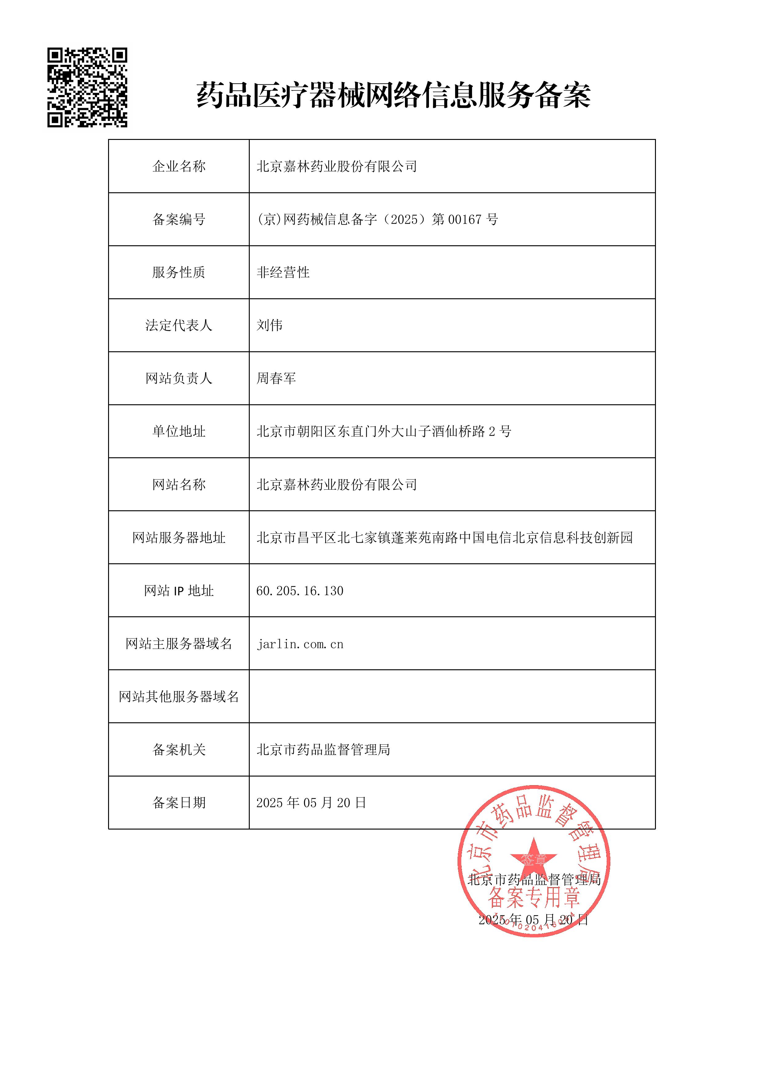 北京嘉林藥業股份有限公司成立于1998年12月,是北京市科委任命的高新技術企業,是上市公司德展大健康股份有限公司(簡稱:“德展健康”,股票代碼000813)的全資子公司。
